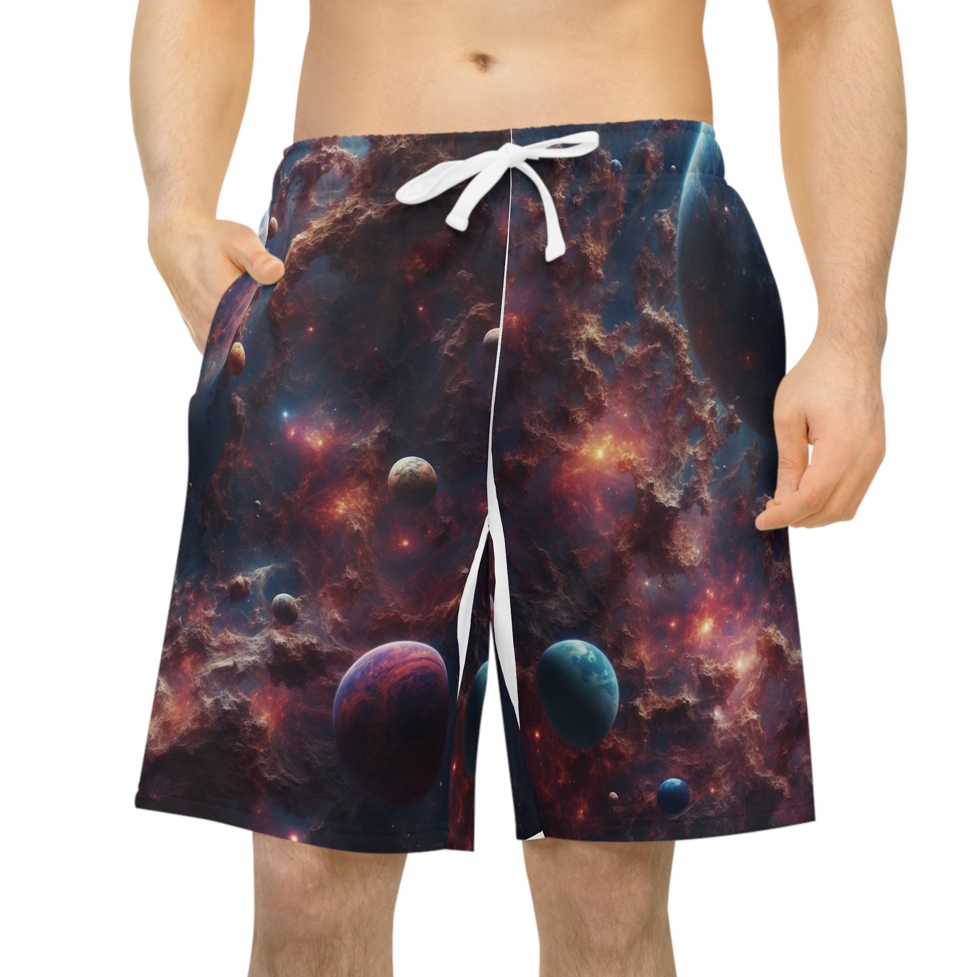 These shorts boast a captivating design that transports wearers into an imagined universe, featuring intricate celestial patterns and vibrant cosmic colors. The interplay of swirling galaxies and nebulous clouds creates a mesmerizing visual experience, while the lightweight and breathable fabric ensures comfort for cosmic exploration. Step into a realm of limitless imagination with these shorts that blend comfort and style, inviting wearers to embark on a fashion journey through the vastness of an imaginary universe.